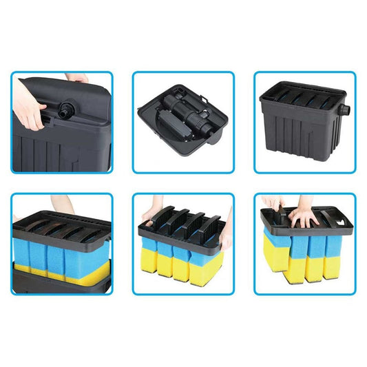Multi Chamber Filters are ideal for large stocked ponds that are home to Koi, multi chamber pond filters have the space to hold various types of media and filter large amounts of water.