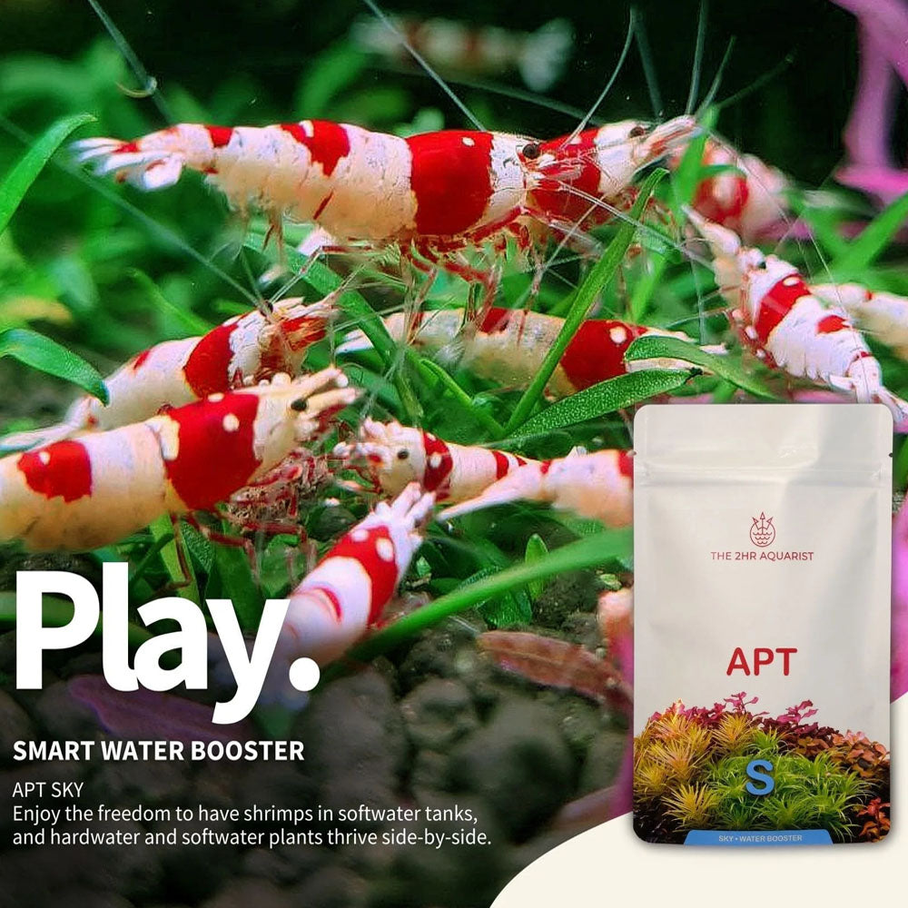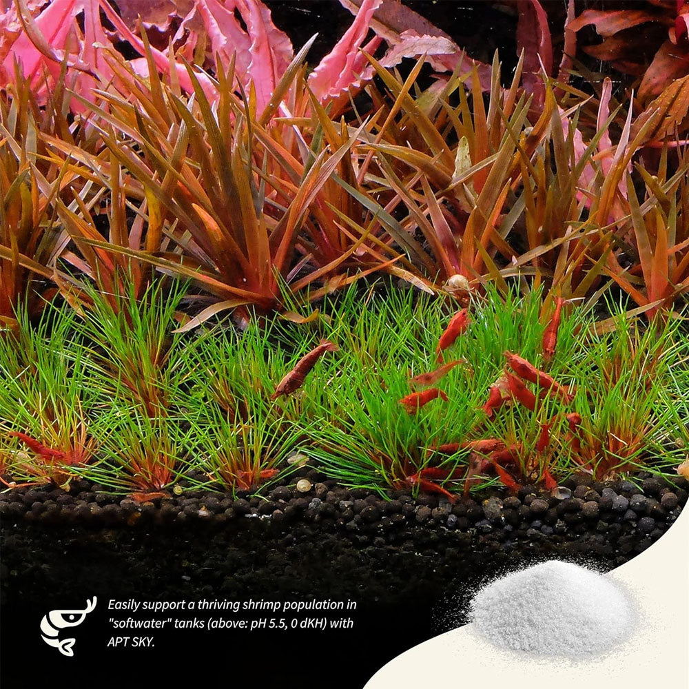 Plants have conflicting softwater / hardwater requirements. APT Sky and APT Sky Plus remove the hassle of having to choose between softwater and hardwater plants. For softwater tanks, it boosts shrimp health and reproduction. The catch? It does require softwater or Reverse Osmosis (RO) water to begin with. At the moment, there is no easy way to make hardwater - soft.