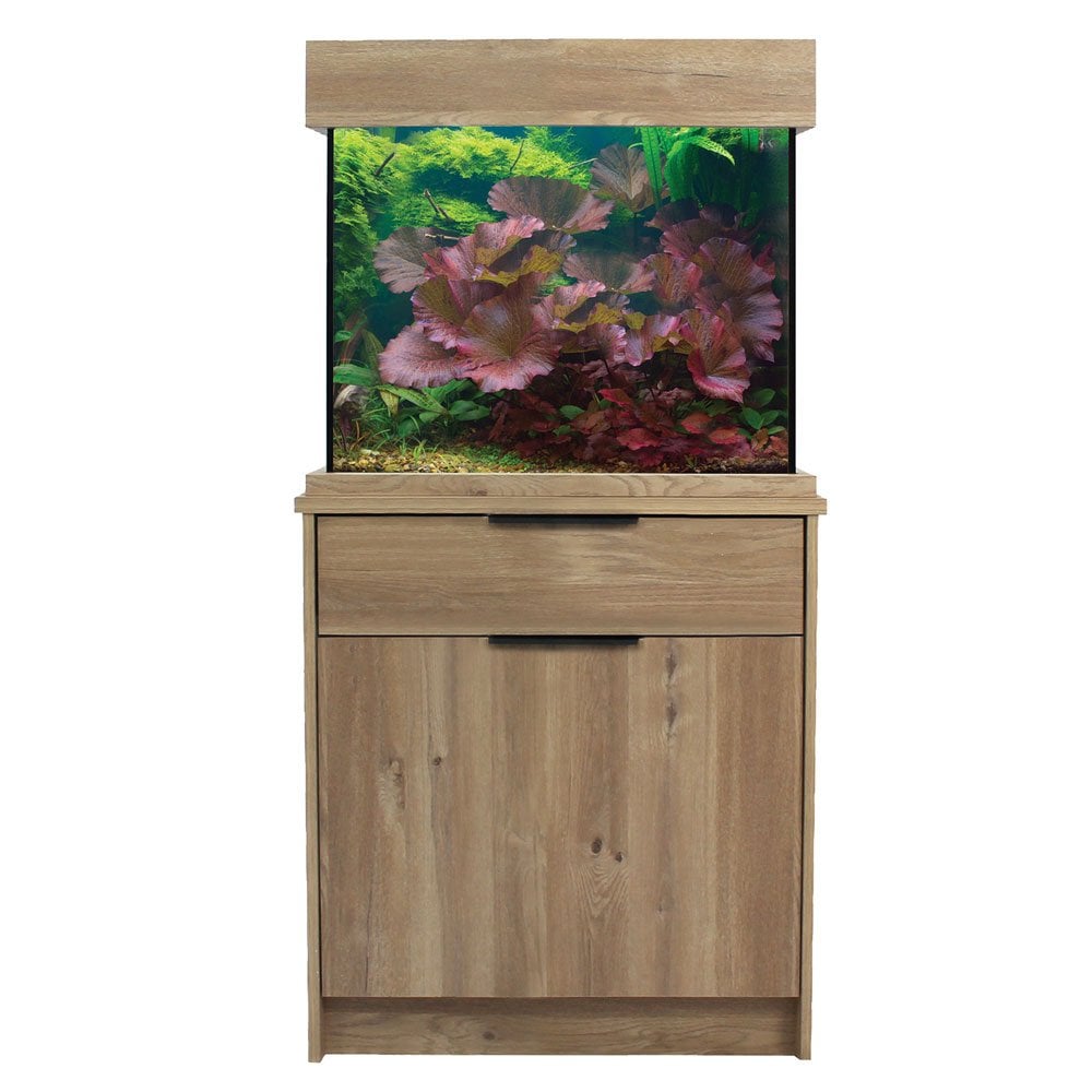 The Aqua One OakStyle 110 Aquarium & Cabinet Set provides a high quality 6mm glass aquarium and matching cabinet combination in a unique Nash Oak wood effect finish. The OakStyle Nash Oak aquarium range combines a modern wood effect finish with slim line metal handles for a highly desirable finish. Say goodbye to clutter with the abundance of storage space offered behind the cabinet doors and in the useful drawers, perfect for tucking away your aquarium accessories.