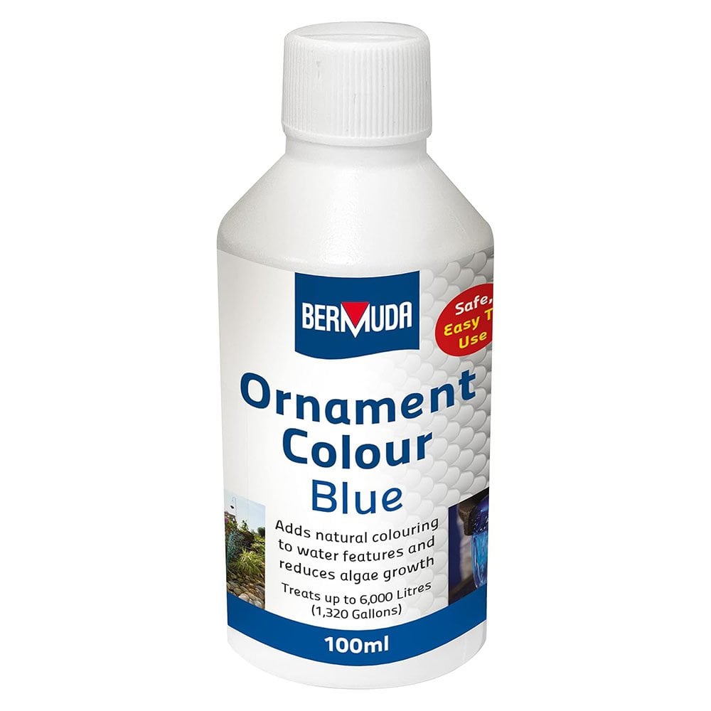 Bermuda Blue Water Feature Colour Dye adds a blue tint to your water feature which filters out light to help prevent unsightly algae growth. Safe and easy to use, the Ornament Colour Dyes are manufactured to the highest standards using high quality food colourings making it harmless to fish, wildlife and pets.