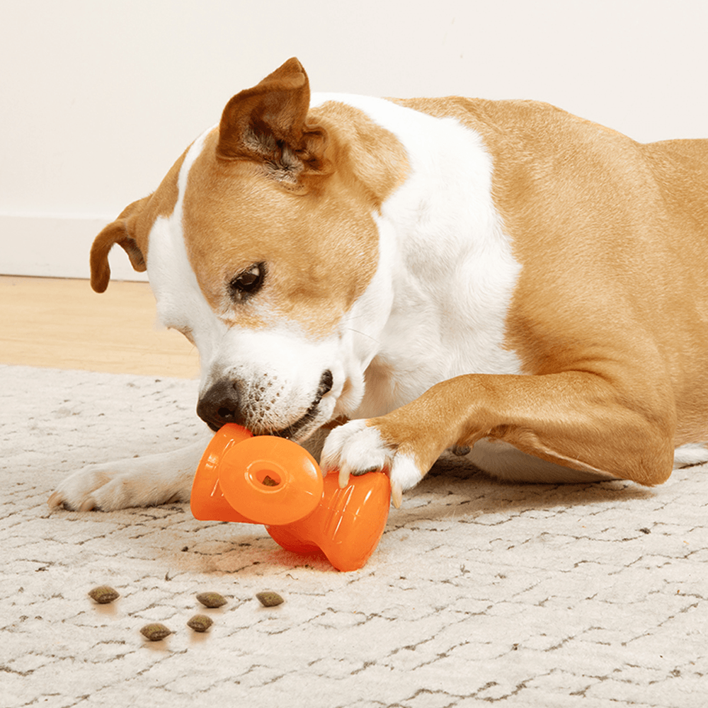 Keep your dog playing and chewing longer by surprising them with hidden treats! Fill the Stuffer with their favourite kibble or treats for mental stimulation during chew time, redirect destructive chewing behaviours, or to help with separation anxiety.