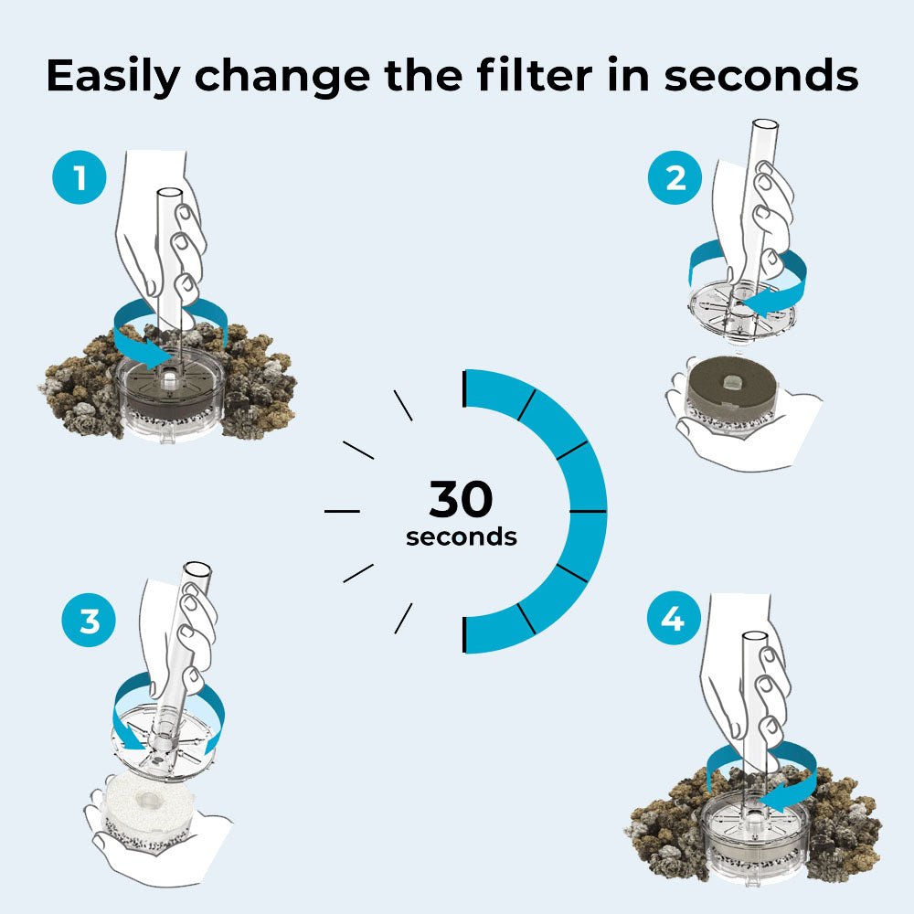 - Easy cleaning and care and thanks to a patented filter system the ecosystem is kept in balance