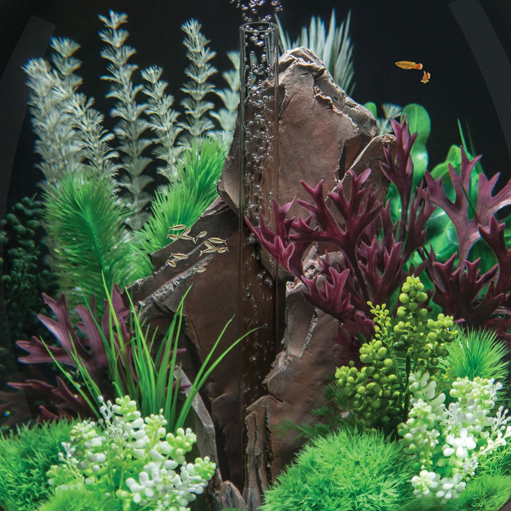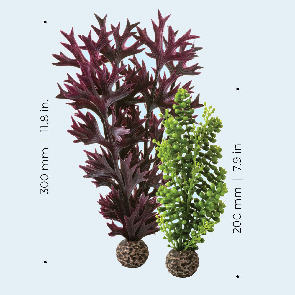 Instead of a large plastic base these attractive replica plants have a smooth weighted ball which is easier to fit into the ceramic media in the BiOrb Aquariums. The weighted ceramic base keeps the plants in their intended position and also prevents them from floating.