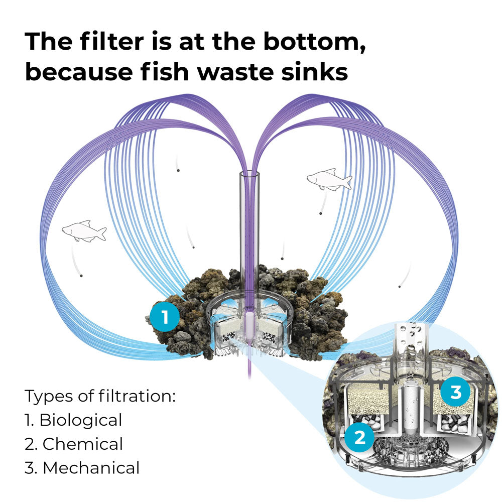 - Easy cleaning and care and thanks to a patented filter system the ecosystem is kept in balance