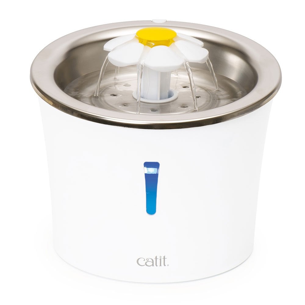 The Catit Stainlees Steel Flower Drinking Fountain with Triple Action Filter encourages your cat to drink more. With its high-grade stainless steel top the Flower Fountain features a shallow, hygienic drinking area that doesn’t irritate your cat’s whiskers or skin. The Stainless Steel Drinking Fountain boasts a 3L reservoir to provide your cat with fresh drinking water 24/7.