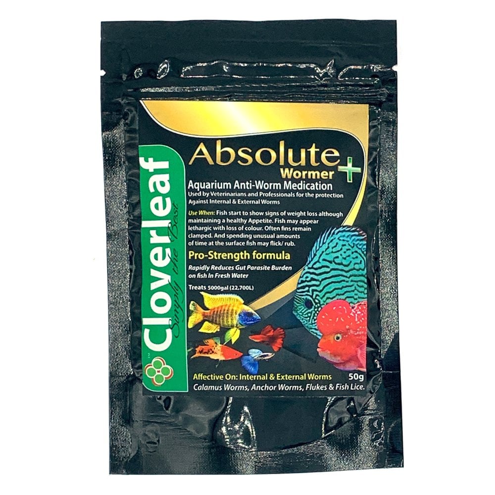 Cloverleaf Absolute Wormer with added pH buffer is effective against outbreaks of Skin flukes (Gyrodactylus), Gill flukes (Dactylogyrus), Internal worms (Nematodes), Hexamita, Anchor worm (Lernea), Leeches (Piscicola) and Fish Lice (Argulus).
