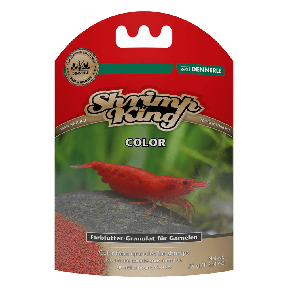 Dennerle Shrimp King Color is a sinkable, water-stable food granule made from 100% natural ingredients to provide the natural colour enhancement of freshwater dwarf shrimp.