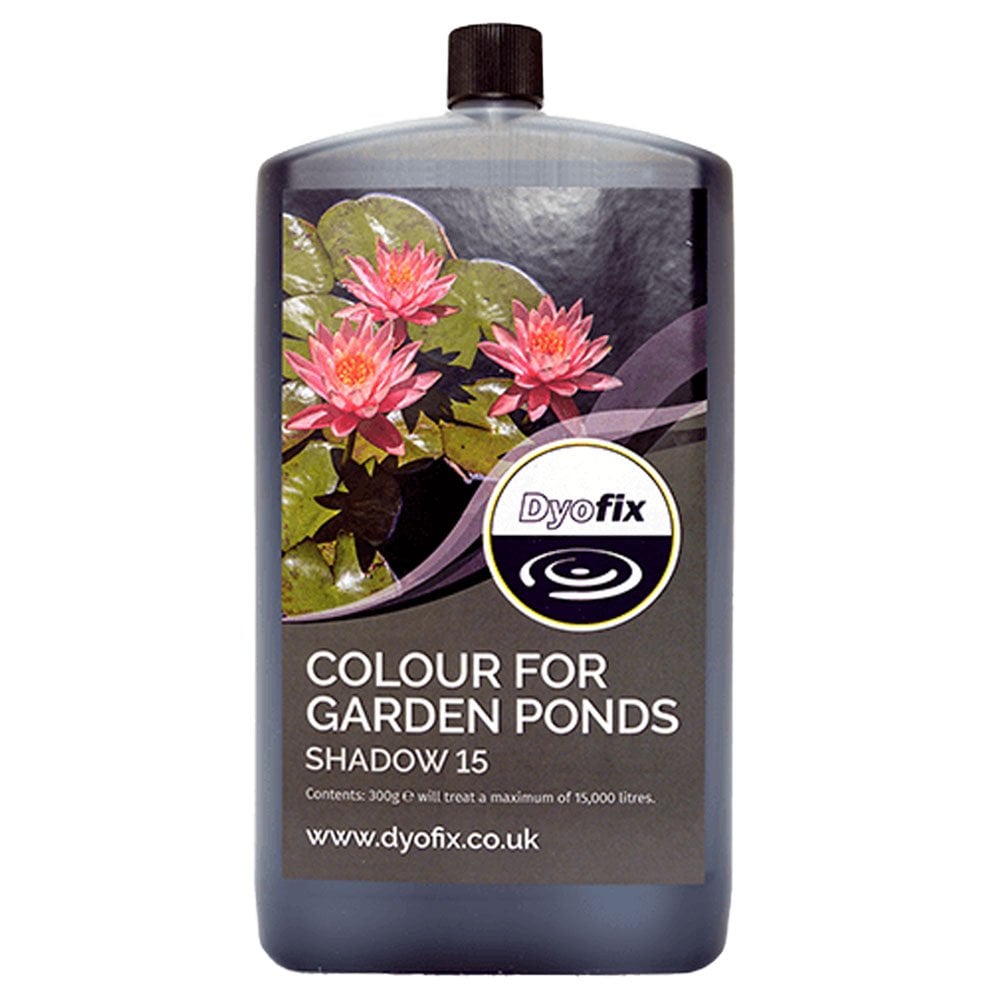 DyoFix SGP Shadow has proved very popular with gardeners that want to treat their water with an algae prevention product, without the tint of blue. Our Shadow blend reflects the primary colours (in equal amounts) and appears to the naked eye as being colourless because it allows some of the visible light to penetrate the water. In reality, if treated water was compared to clear water, a very faint tint of grey would be observed.
