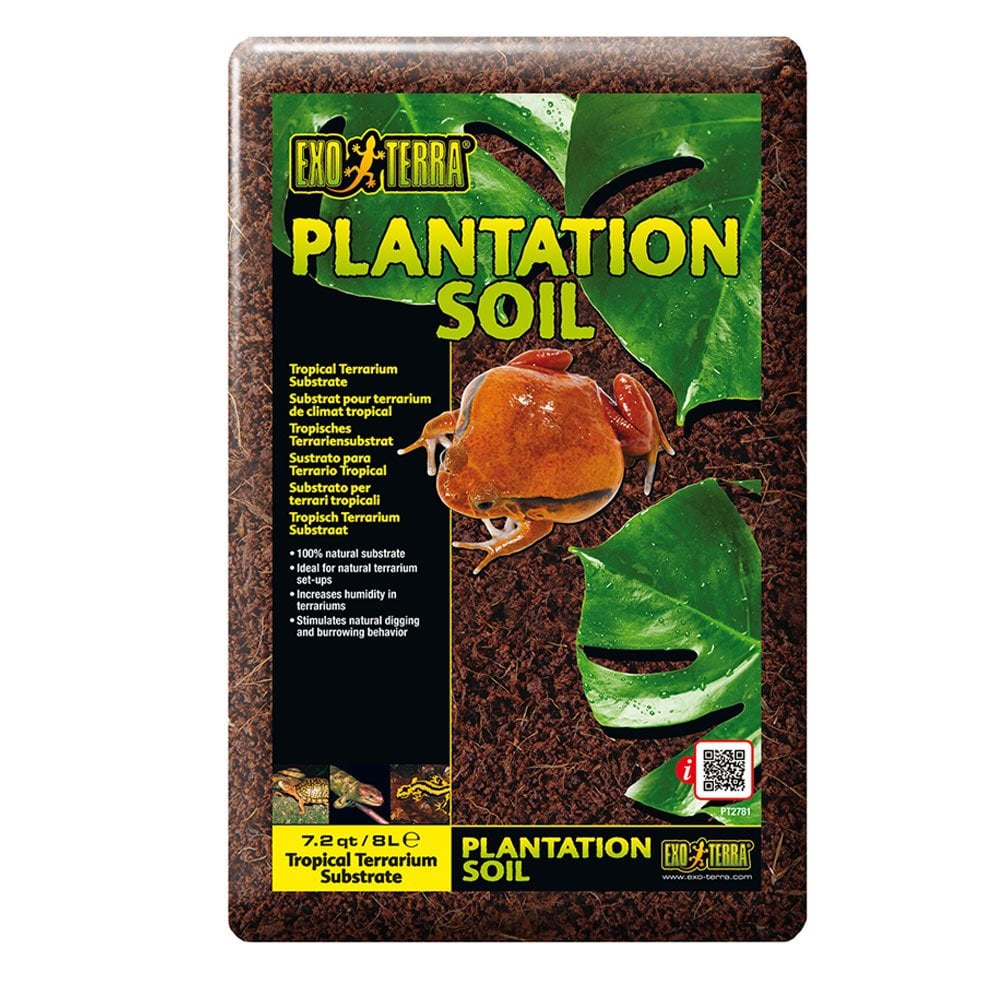 The Exo Terra Plantation Soil makes an ideal substrate to create natural planted terrarium set-ups for humidity-loving reptiles, amphibians and invertebrates. Its water retention, natural rooting hormones and anti-fungal properties promote plant growth in your terrarium. The unique coir pith used for the Exo Terra Plantation Soil consists of a mixture of short fibres and coco-peat grain sizes ranging from coarse granules to fine clumps resulting in improved soil drainage and healthy plant root aeration. The improved aeration also promotes the cultivation of healthy waste-reducing organisms keeping your terrarium fresh and clean. Exo Terra Plantation Soil is triple machine washed to remove any residual salt content, then machine dried and heat-treated to reduce bacterial contamination. Exo Terra Plantation Soil can also be used as an incubation medium because of its hygroscopic properties.