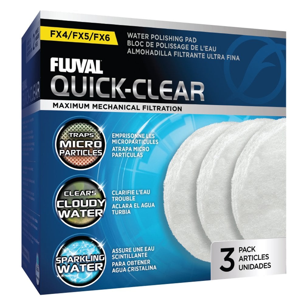Fluval Quick-Clear Polishing Pads are specially designed for Fluval FX2, FX4, FX5 and FX6 High Performance Canister Filters. These extra thick, micro-fine polyester pads effectively trap micro-particles and debris as water passes through. The pads are ideally used when cloudy water occurs or after tank maintenance to produce crystal clear aquarium water.