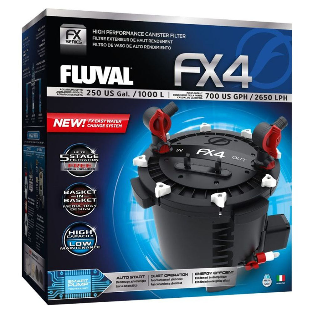 Building on the mighty FX performance and reliability platform, the Fluval FX4 high performance Aquarium Canister Filter is the compact 'little brother' to the FX6. The Fluval FX4 bridges the gap between the Fluval FX2 and the FX6 Canister Filter, making it an ideal choice for aquariums up to 1000L.