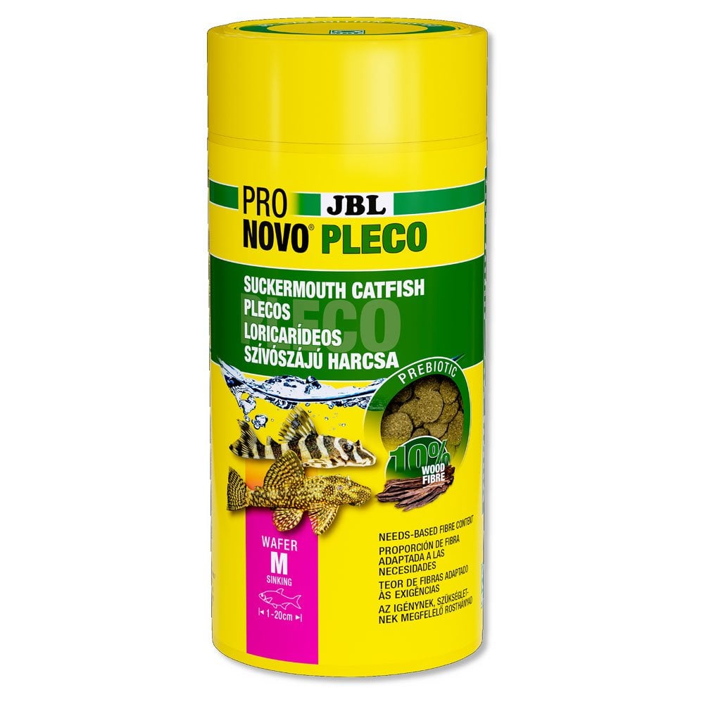 JBL ProNovo Pleco Wafer Sinking Food tablets with wood content are ideal for herbivorous sucker catfish ranging in size from 1-20cm.
