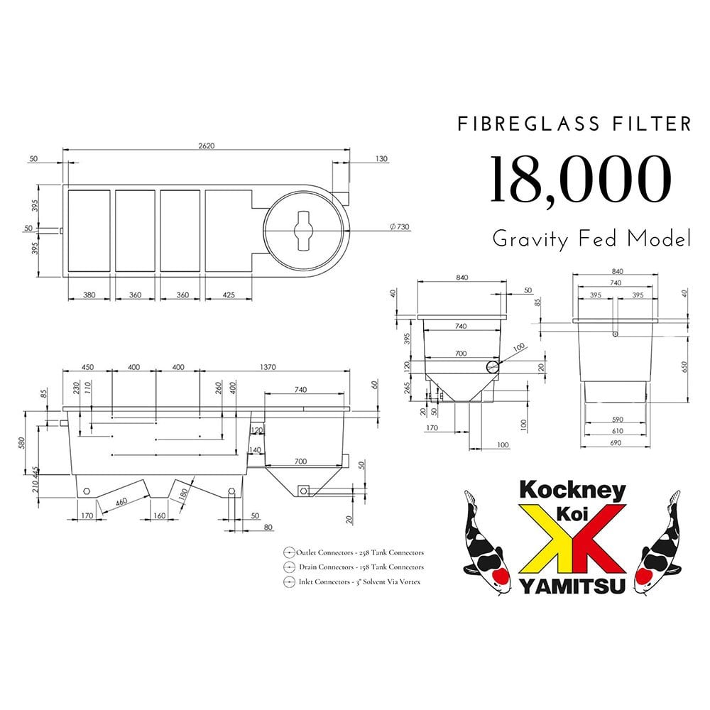 The Kockney Koi 18000V FG Multi Bay Filter is a high quality, free-standing, fibreglass, four bay, filter with an integral vortex designed to provide a clear and healthy environment for your fish to thrive. The tried and tested vortex and multi chamber design ensures maximum filtration with minimum maintenance.