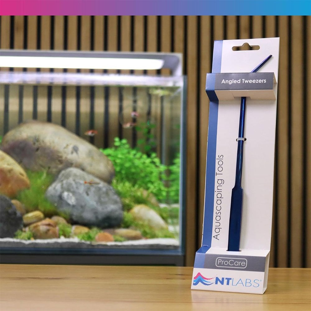 NT Labs ProCare Angled Tweezers have been engineered as the perfect tool for aquascapers to position and plant live aquarium plants to create an amazing aquascape. The high quality ProCare Aquascaping Tools from NT Labs have been manufactured using a unique, blue coated stainless steel finish for long lasting use. The ProCare 25cm Angled Tweezers are ideal for the care of underwater plants thanks to their ergonomic design and long reach.
