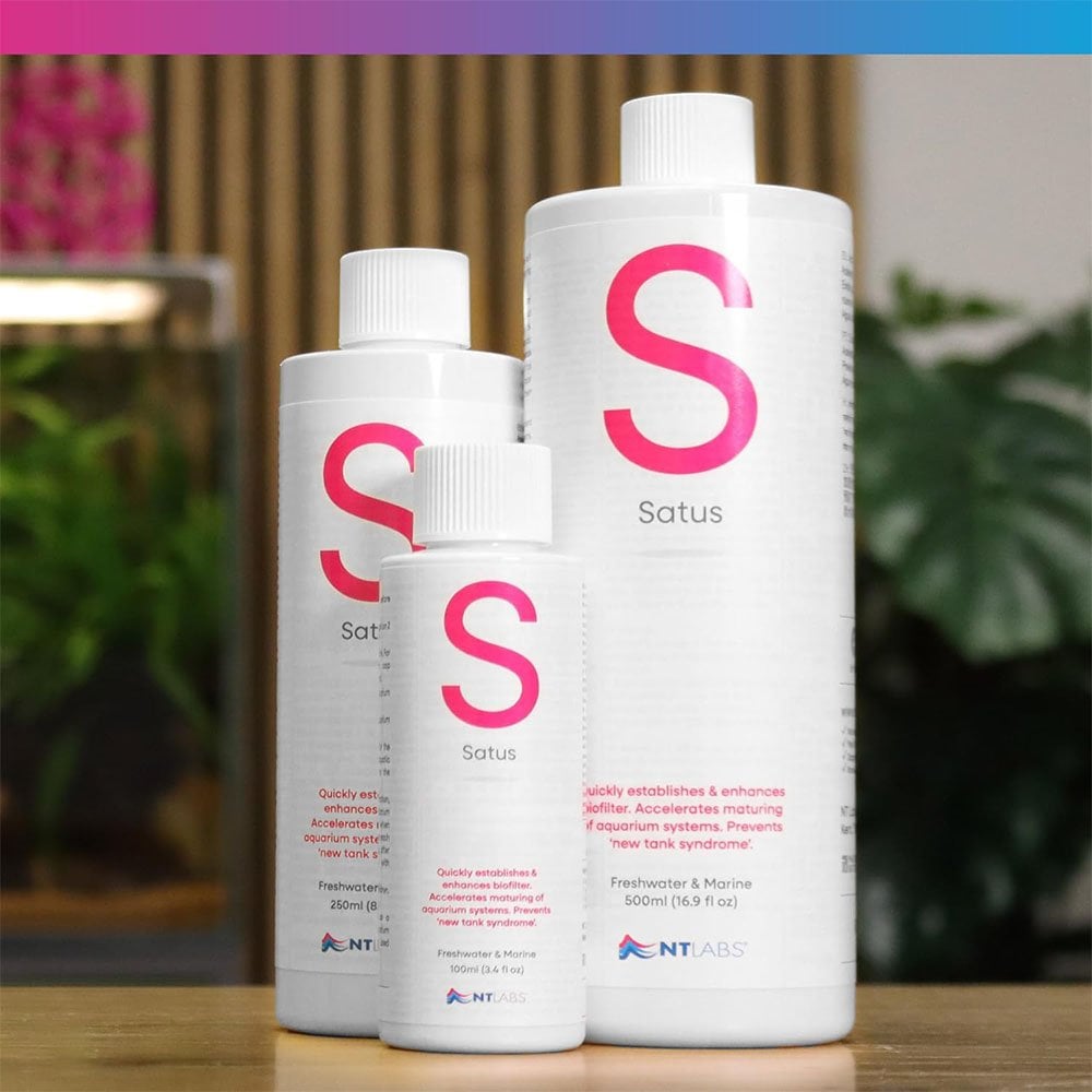 NT Labs Satus is a valuable new tool for all fish keepers as it quickly establishes and accelerates the maturing of aquarium biofilters. This prevents toxic 'new tank syndrome' providing a safer environment for your fish. Satus contains NT Lab's innovative ‘Satus organism’ capable of rapidly removing ammonia without relying on the traditional, slower nitrifying cycle. Working under both aerobic and anaerobic conditions, the ‘Satus organism’ can also degrade organic compounds which bacteria cannot. Satus has a higher metabolic rate that provides faster breakdown of organic wastes to prevent them building up in the aquarium.