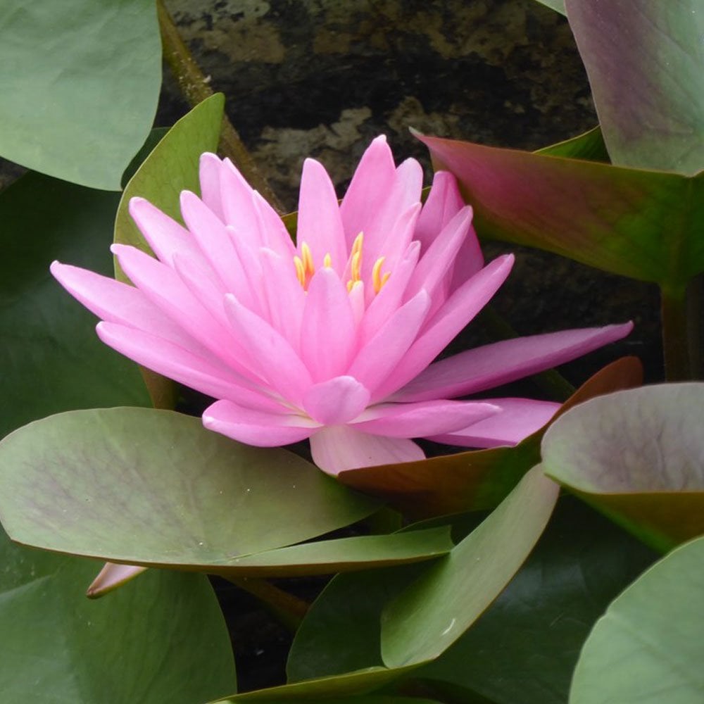 The large, rose-pink, stellate flowers of this charming water lily have slightly incurved petals. It is valued for its free-flowering habit and elegant foliage. Plant in still water away from splashing fountains. Lower gradually so the leaves can stretch to the surface within a few days. Remove dead leaves and flowers during the growing season.
