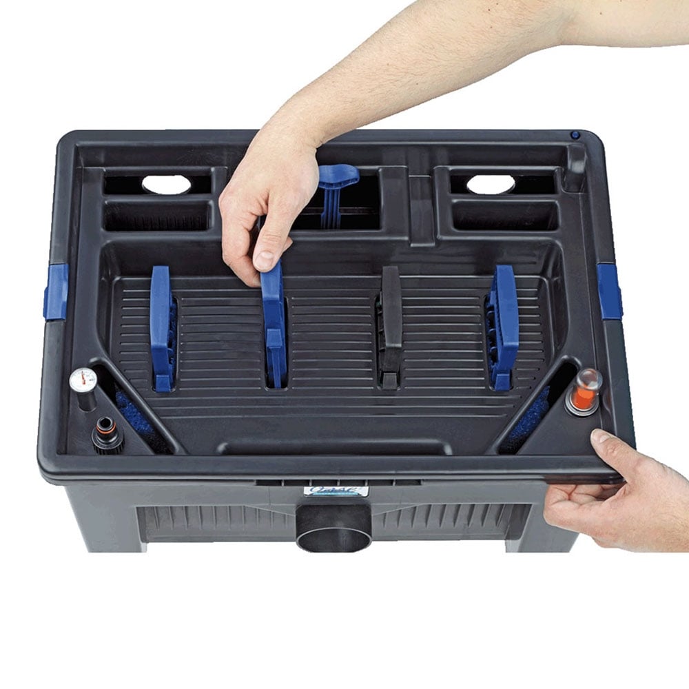 The filters clever design provides a high level of oxygen enrichment and a large water flow-through rate. The different filter foams offer the necessary volume and a large surface area for optimal development of the filter biology.