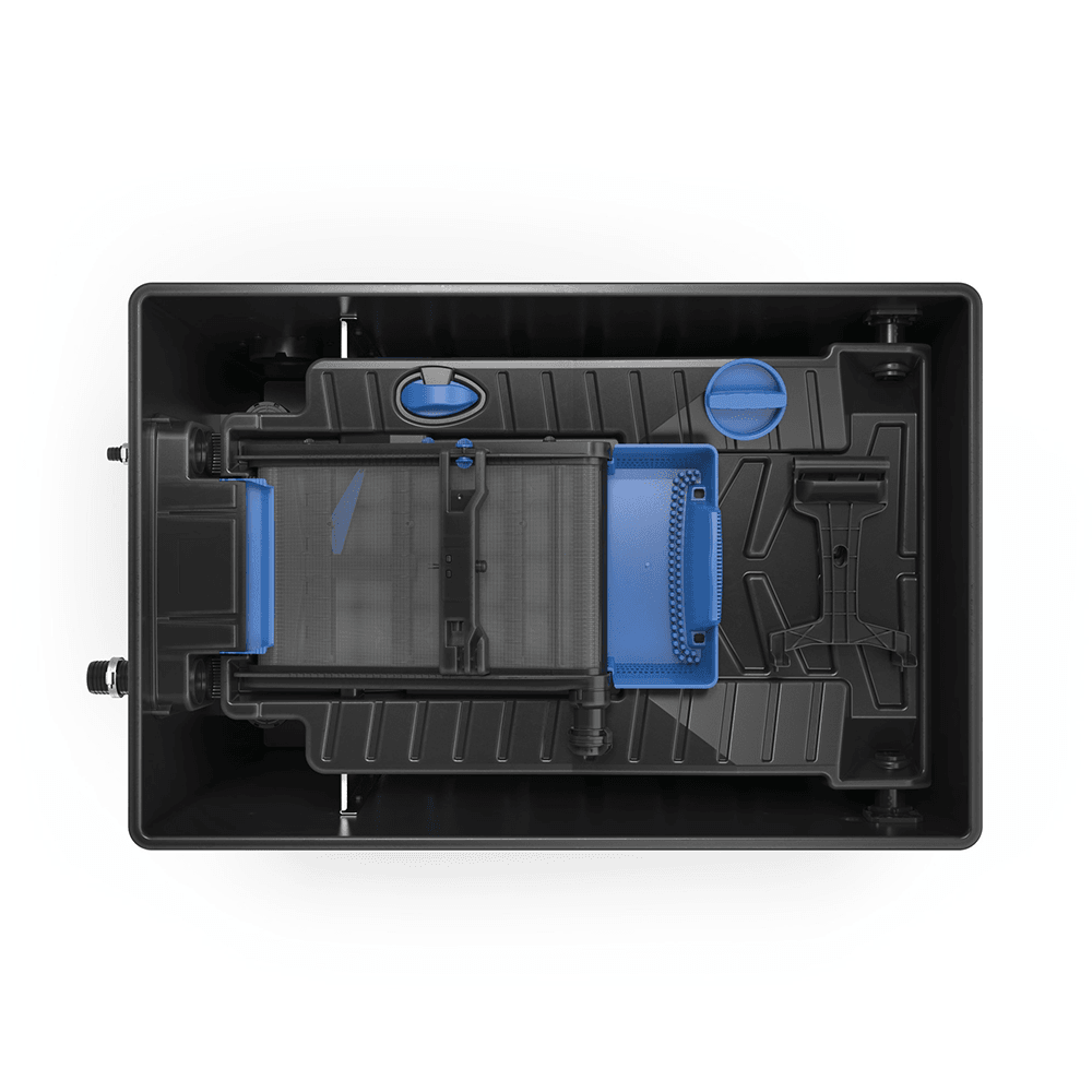 Once the pre-filtered water has passed through the ScreenMatic sieve it drops into the foam filter stage. The large surface area filter sponges vary in grade and provide both mechanical and biological filtration, removing any remaining debris from the water. You can easily clean the filter foams directly in the filter, without removal thanks to the compression handle. Simply use the handle to push down and compress the foams to release any build up of organic waste which can then be drained from the filter via the sludge drain. Lastly the water passes through zeolite media cartridges which absorb any remaining unwanted ammonia before the water returns back to the pond.