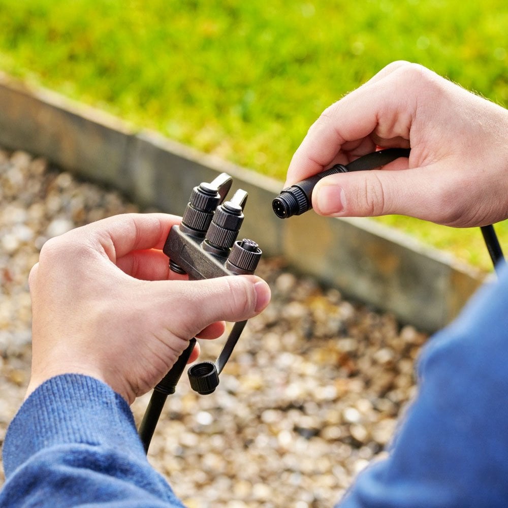 The 3-Way Distributor plugs directly into the Oase LunAqua Connect Controller Easy Switch. Alternatively the 3 way outlet is also compatible with the LunAqua Connect RGB Extension Cables and LunAqua Connect RGB Outlet Cables to create more lighting outlets for the connection of additional Oase LunAqua Connect M RGB Solo Spotlights.