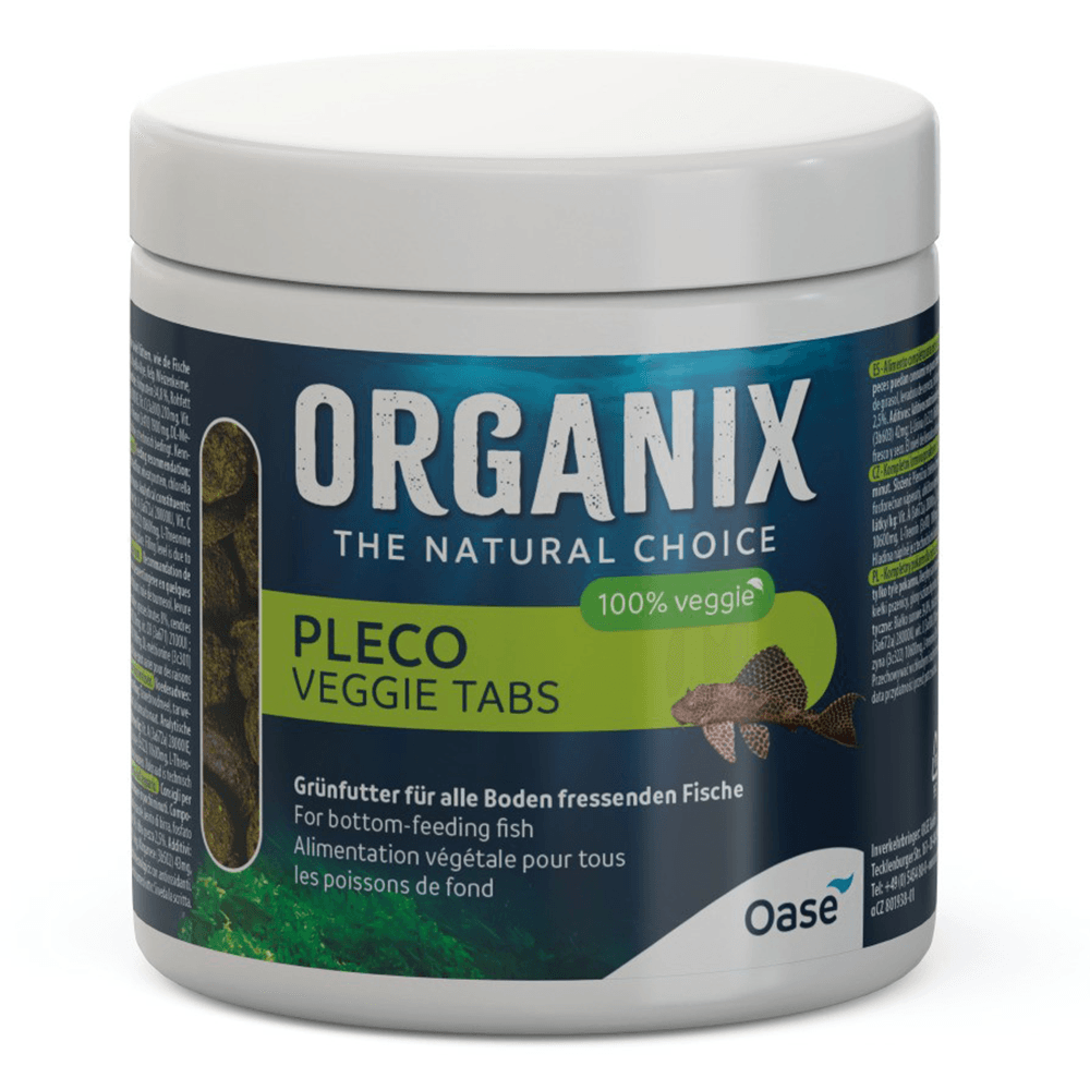 Oase ORGANIX Pleco Veggie Tabs are the ideal food for a purely herbivorous diet. High-quality plant ingredients are combined with an increased amount of a special algae mix of 12% kelp, 12% chlorella algae and 2% schizochytrium algae. These power algae are optimal natural sources of prebiotics and rich in vitamins and trace elements that support and maintain the vitality of herbivorous aquarium inhabitants. The ORGANIX Pleco Veggie Tabs sink quickly to the bottom of the aquarium and are available to bottom-dwellers and plant lovers to nibble away at in peace. Pleco Veggie Tabs are pressed extra hard so that they do not break down immediately but retain their shape. This ensures long-lasting eating enjoyment. Slow eating not only promotes the health of aquarium inhabitants, but also keeps them busy.