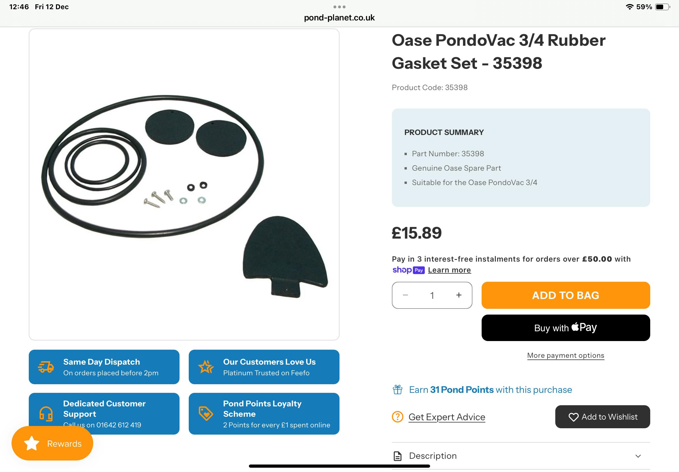 Pond Points Loyalty Scheme 2 Points for every £1 spent online