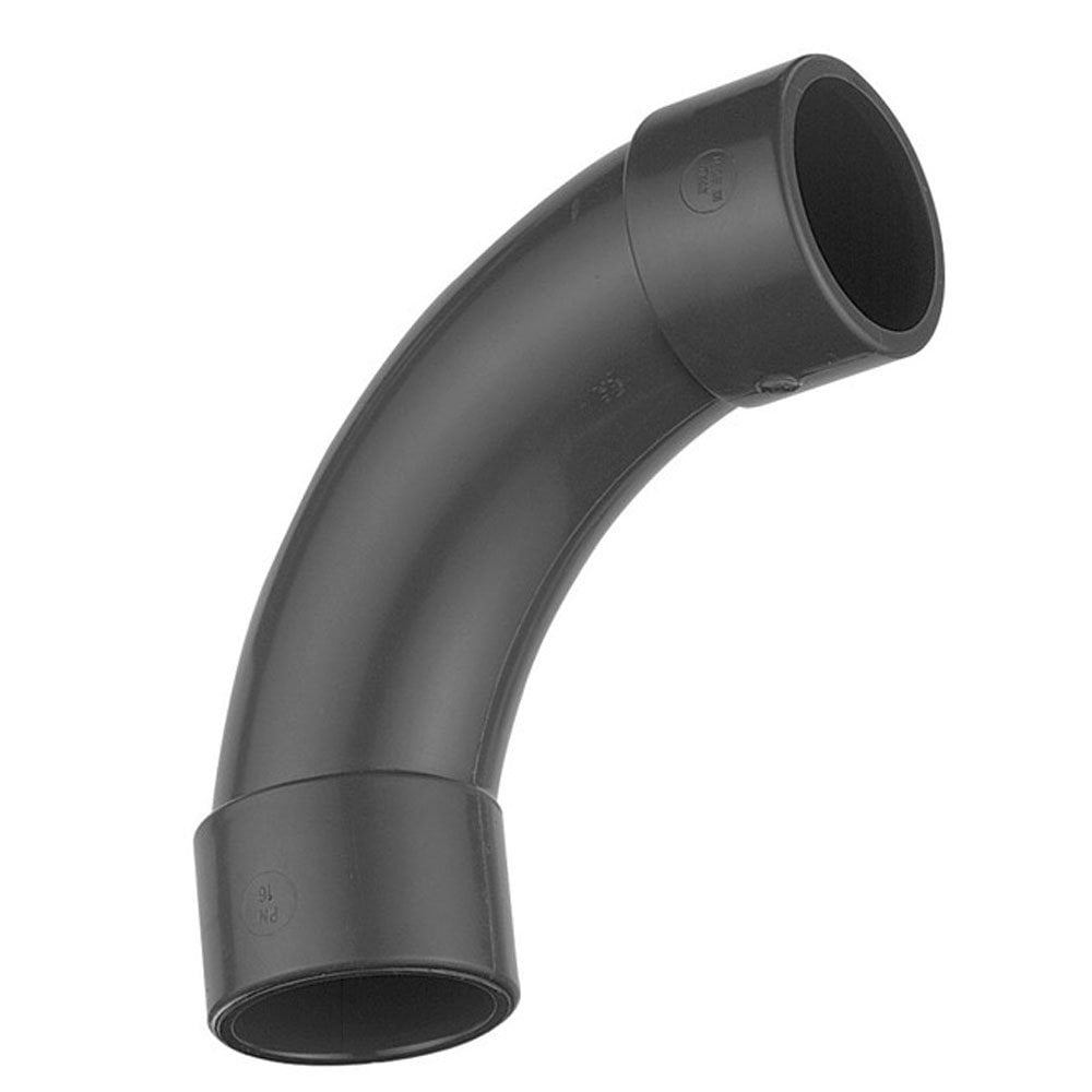 Pressure Pipe Swept 90 Degree Bends should be used in conjunction with PVC Pressure Pipework. These Swept 90 Degree Bends/Elbows are used to join 2 same diameter pieces of PVC Pressure Pipe together at a Swept 90 degree angle with a low friction loss.