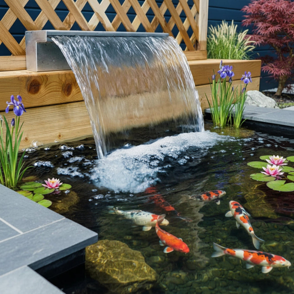 The Pond Planet Stainless Steel River Falls Water Blade provides a sleek and stylish water feature designed to create a striking effect in your pond or garden. Available in various widths from 200mm to 600mm and with a 60mm spout, this Water Blade feature delivers a smooth, elegant water flow for an attractive display.