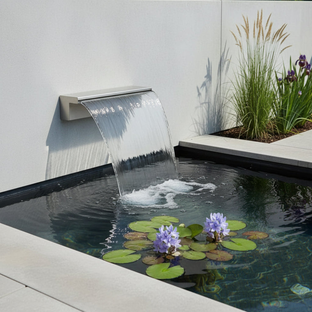 The Pond Planet Stainless Steel River Falls Water Blade provides a sleek and stylish water feature designed to create a striking effect in your pond or garden. Available in various widths from 200mm to 600mm and with a 60mm spout, this Water Blade feature delivers a smooth, elegant water flow for an attractive display.