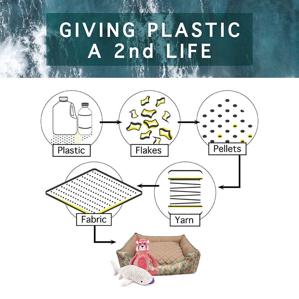RESPLOOT is an ongoing effort to contribute in curbing plastic bottles reaching land fills and oceans. It also encourages a sustainable way of living. The RESPLOOT range of pet beds and toys are made from recycled Polyethylene terephthalate (PET) bottles. The reuse of plastic bottles not only reduces waste but recycled polyester emits 75% less CO2 emissions than virgin polyester meaning its also better for the environment.