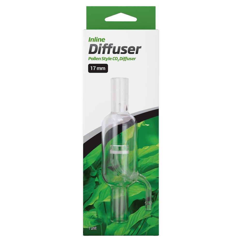The 17mm Glass Inline CO2 Diffuser from Seachem is a pollen style inline CO2 diffuser that is placed in the outflow line of the filter or aquarium pump to efficiently diffuse CO2 gas into the aquarium. This placement of the diffuser avoids the need for a diffuser in the aquarium and significantly reduces the visibility of the CO2 injection system in the aquascape. This also allows for more rapid diffusion of CO2 into the system and can allow for more consistent levels and reduce waste of CO2 or overdose of CO2