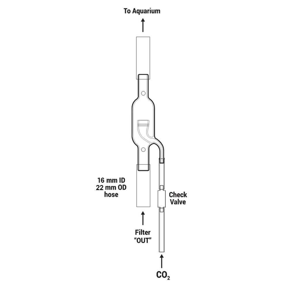 Once securely mounted, turn on filter. Ensure that water passes through diffuser and into aquarium without leaks or bubbles. Turn on CO2. Observe bubble count (bubble counter not included) and adjust CO2 to desired flow rate. Seachem Bubble Counter available for easy monitoring of CO2 flow.