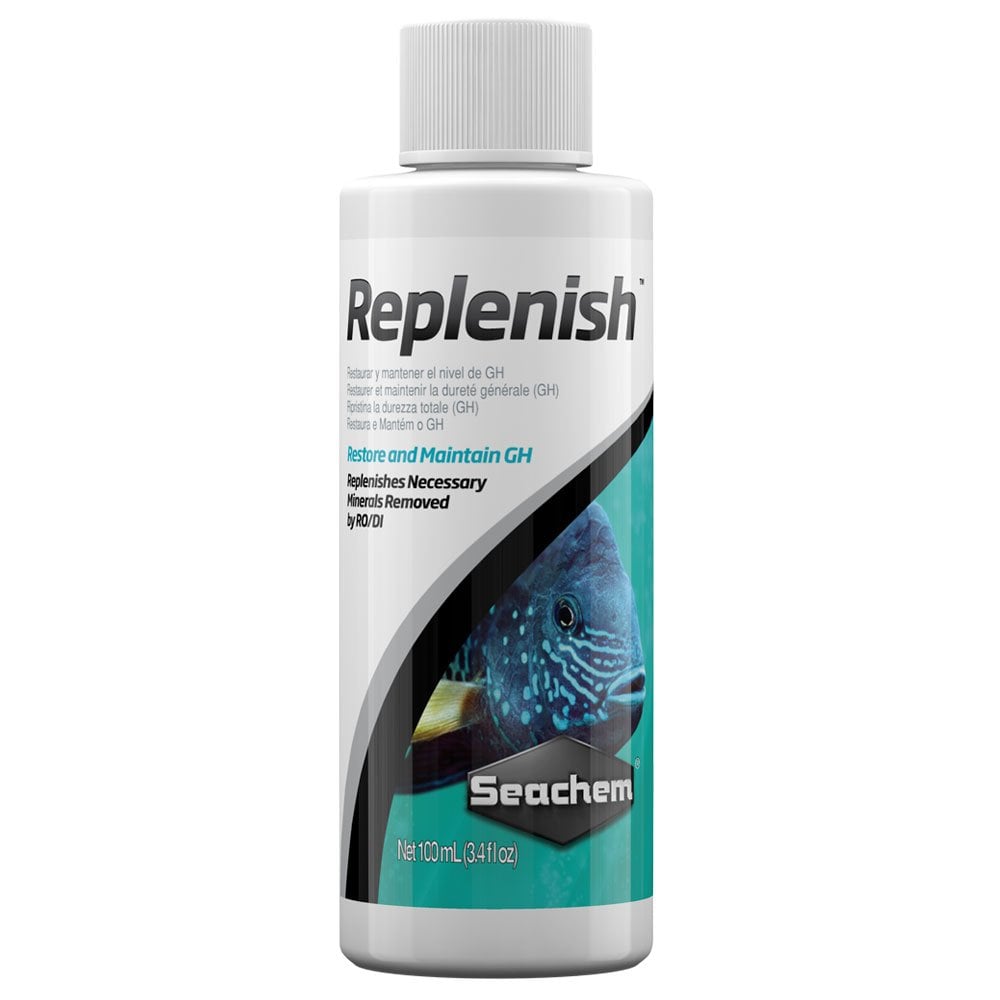 Replenish from Seachem is a proprietary blend of salts designed to replenish physiologically relevant minerals that are removed by reverse osmosis or deionizing filtration. Seachem Replenish restores General Hardness (GH) using a balanced blend of both “soft” (sodium, potassium) and “hard” (calcium, magnesium) salts. Restoration of mineral content is essential since a complete lack of minerals will result in osmotic stress in those species whose osmoregulation systems are adapted to a mineralized environment. Severe osmotic stress can result in osmotic shock which will lead to rapid death.
