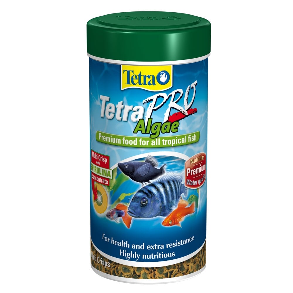 Tetra Pro Algae is an advanced premium fish food which will provide a complete, balanced and nutritious diet for all tropical fish. Pro Algae has a Multi Crisp format with a concentrated Spirulina centre for improved health, colour and disease resistance. The concentrated Spirulina centre makes Tetra Pro Algae perfect for all herbivorous fish, such as mollies, certain barbs and gouramis, as well as Lake Malawi cichlids.