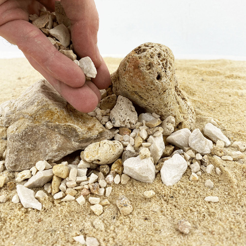 Wio Pale Chip is a sophisticated assortment of miniature pale stones, selectively sourced to align with the understated tones of whitish stones like White Adder Boulders, Hole Stone and other similar types. Drawing inspiration from the soft hues of chalk cliffs and the gentle patterns found in pale geological formations, these accents offer a significant enhancement in detail and a whisper of serene elegance to your nature-inspired settings. They bring a sense of refined beauty and time-worn grace.